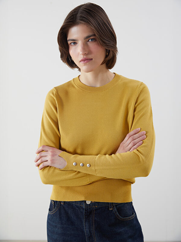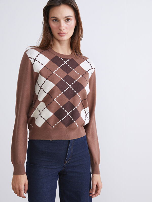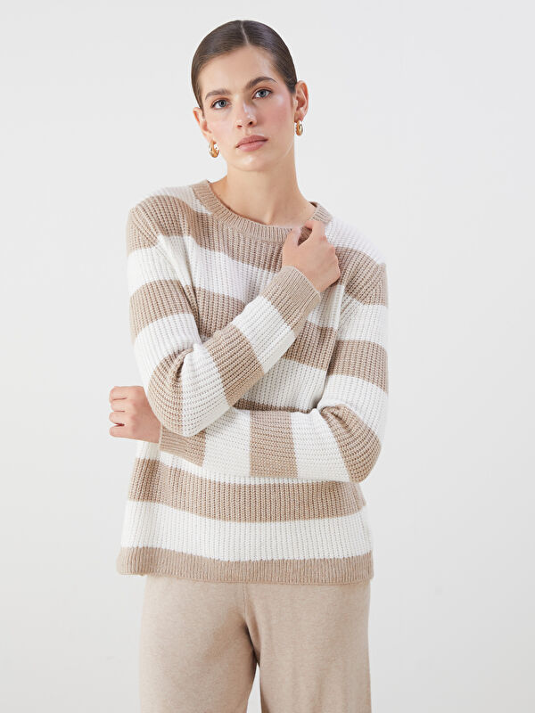 Свитер из трикотажа с круглым вырезом, ажурной вязкой, оверсайз для женщин