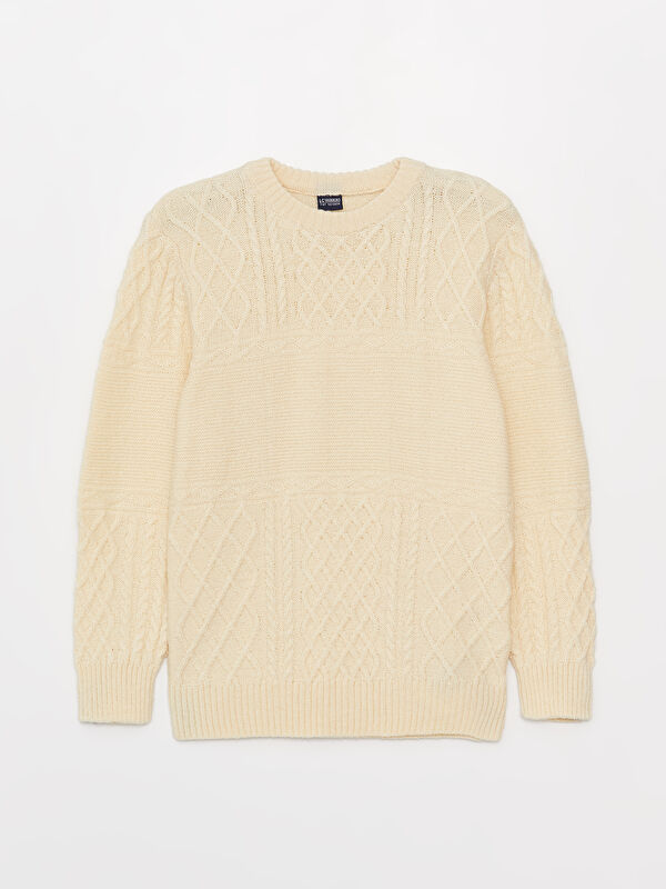 Свитер из трикотажа с длинным рукавом, круглым вырезом и узором Косы для мальчика