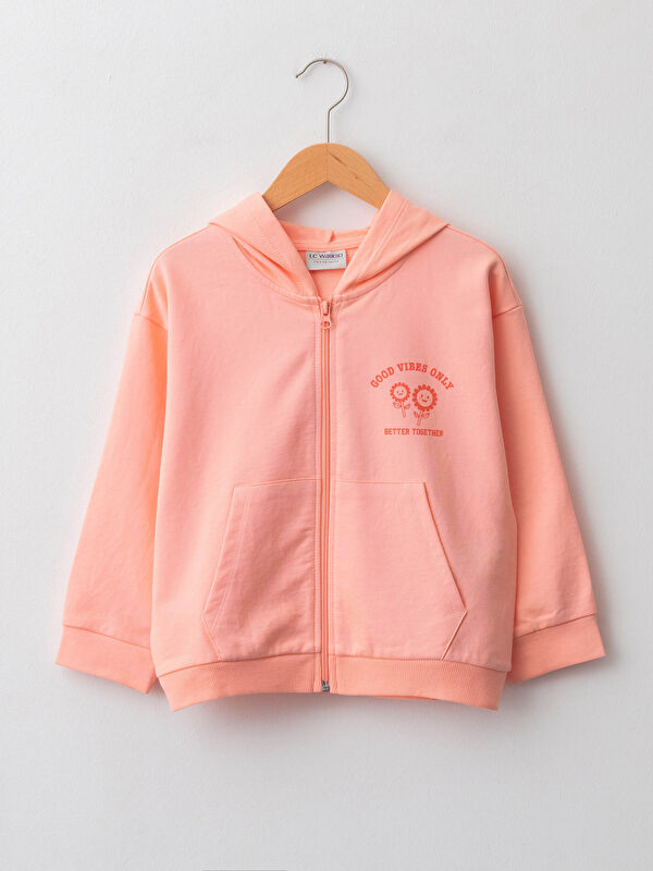 Толстовка на молнии с капюшоном и принтом, с длинным рукавом для девочек