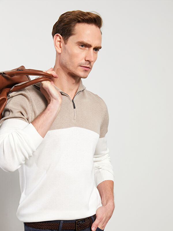 Свитер из трикотажа с длинным рукавом и полуводолазкой для мужчин