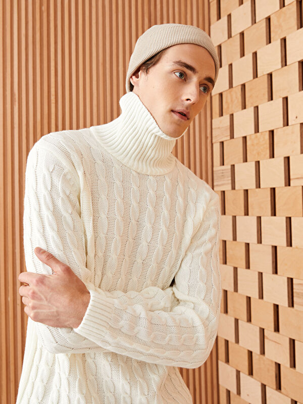 Мужской трикотажный свитер с высоким воротом и длинными рукавами