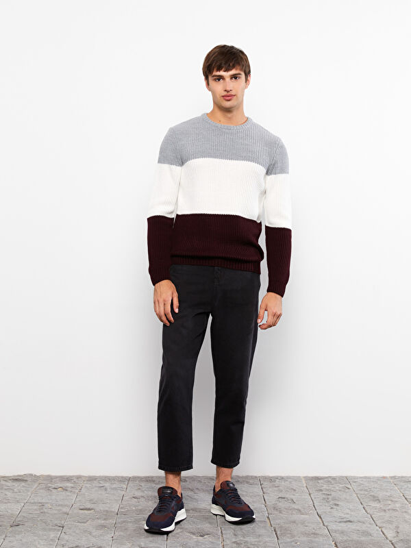 Свитер Мужской Трикотажный Узорчатый С Длинным Рукавом И Воротником-Стойкой