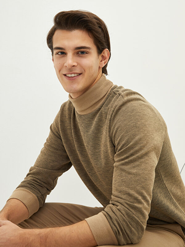 Тонкий мужской трикотажный свитер с круглым вырезом и длинными рукавами