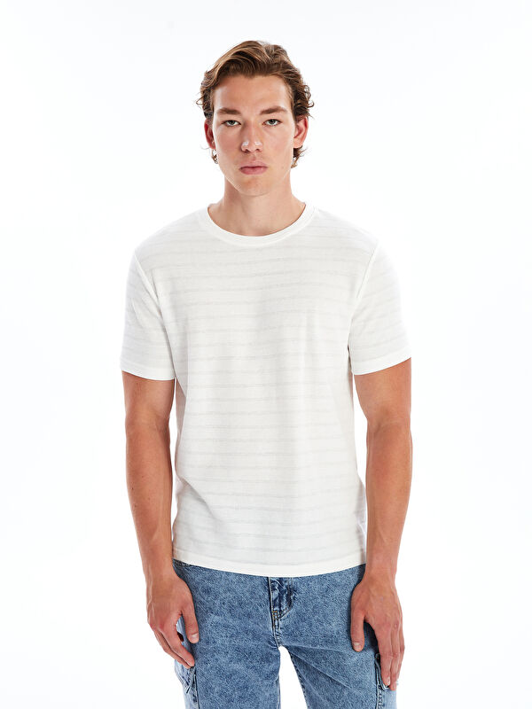 Футболка Мужская Структурированная с Коротким Рукавом и Воротником-стойкой