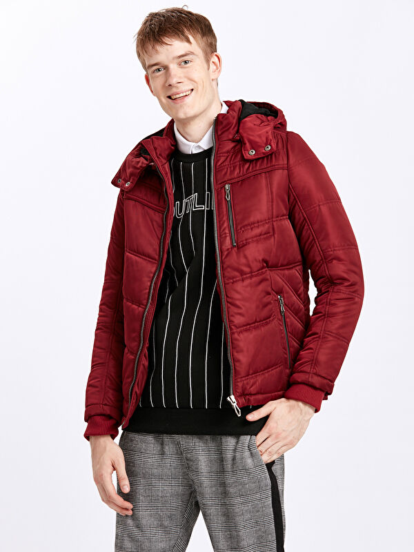 Мужской пуховик стандартного кроя с воротником-трубой