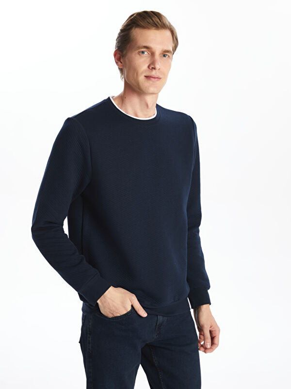 Мужской трикотажный свитер с круглым вырезом и длинным рукавом с узором