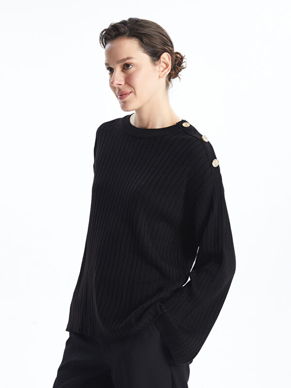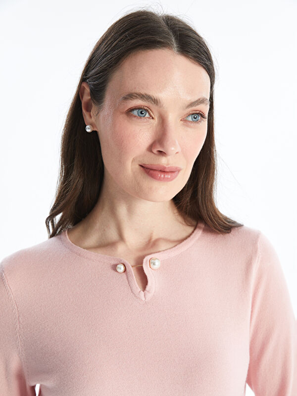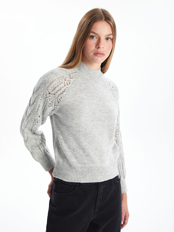 Свитер из трикотажа с длинным рукавом и круглым вырезом для женщин с ажурной вязкой