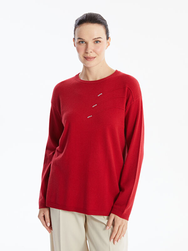 Свитер из трикотажа с круглым вырезом и узором для женщин