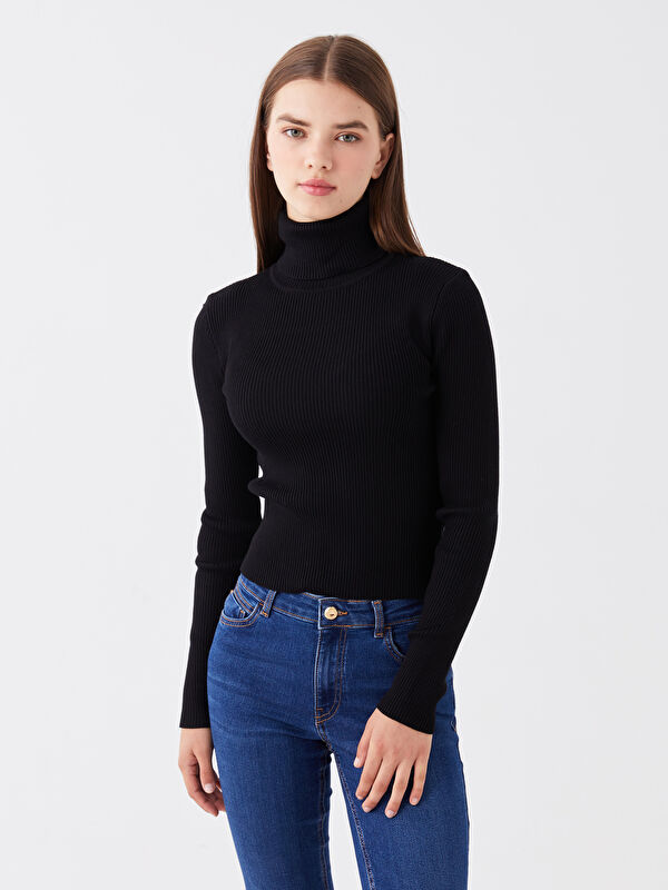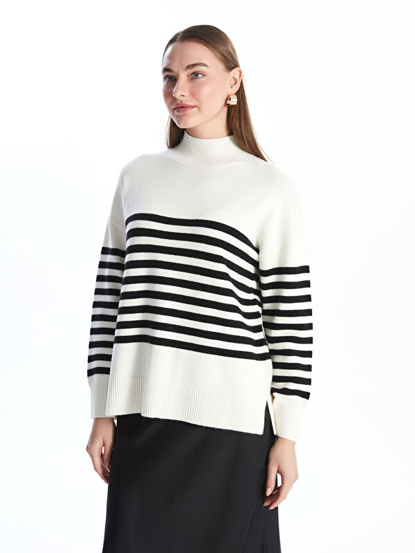 Свитер Женский Трикотажный Узорчатый С Воротником-Трубой