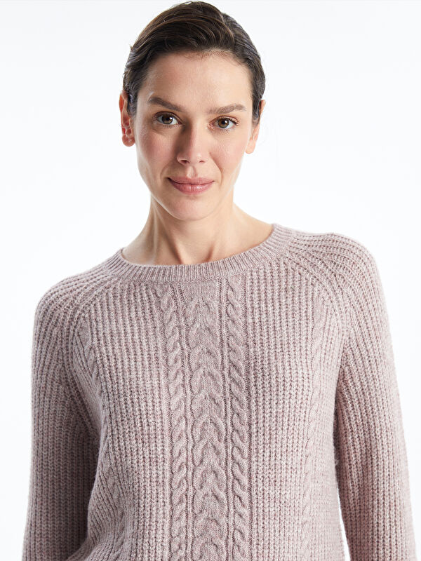 Свитер из трикотажа с круглым вырезом и ажурной вязкой для женщин