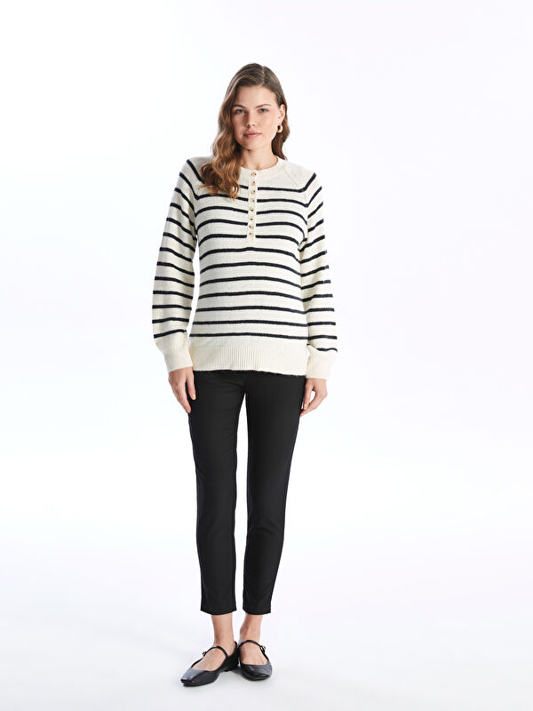 Свитер из трикотажа для беременных с круглым вырезом, узором и длинным рукавом