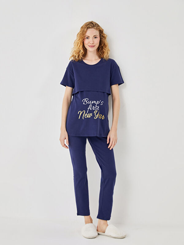 Двубортный воротник однотонное платье с коротким рукавом для беременных