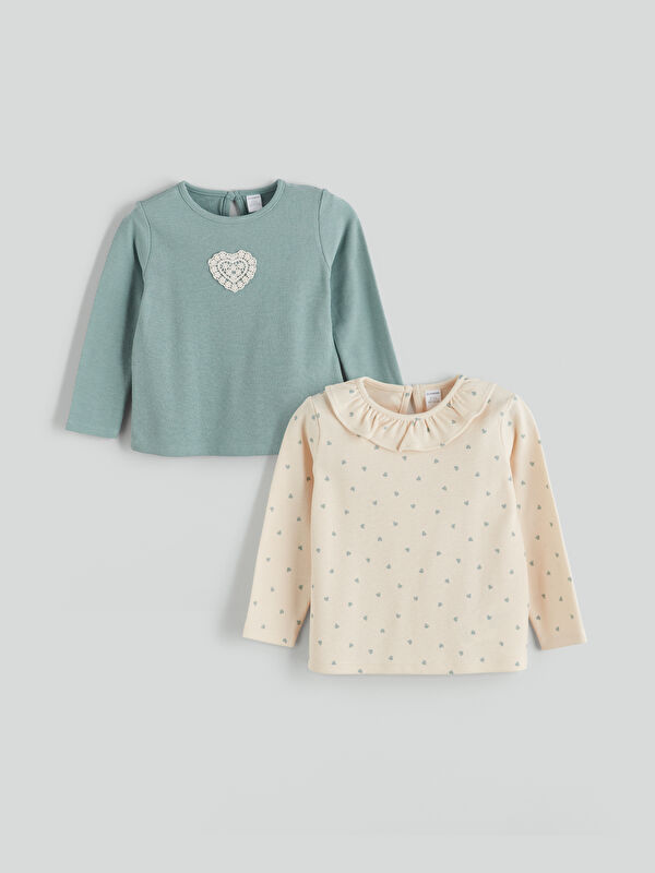Футболка с круглым вырезом и длинным рукавом для девочек, 2 шт. в упаковке
