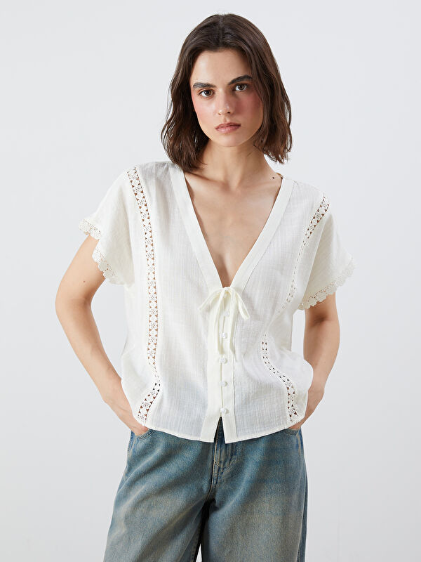Футболка с U-образным вырезом из кашкорсе для женщин