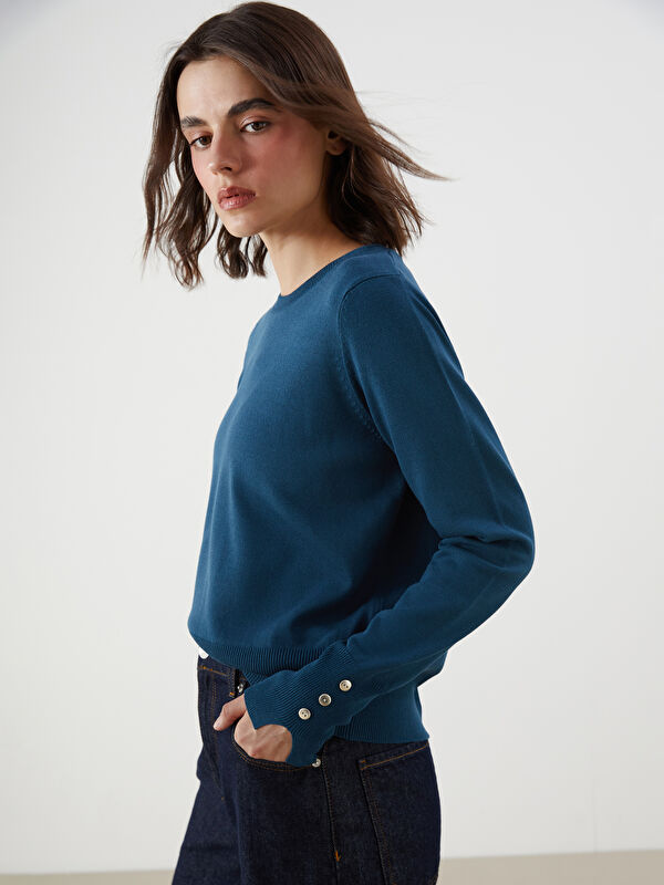 Свитер из трикотажа с круглым вырезом и узором для женщин