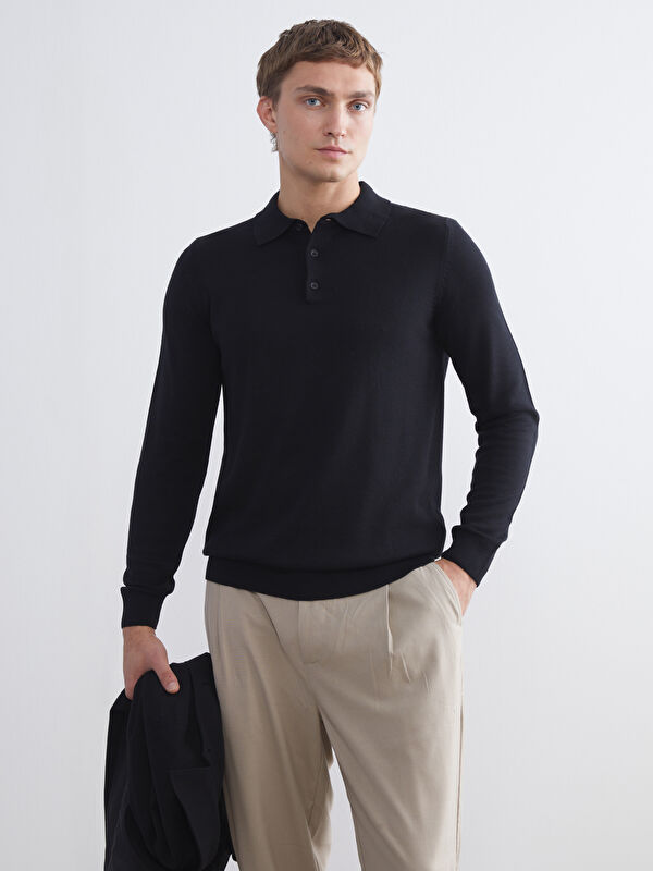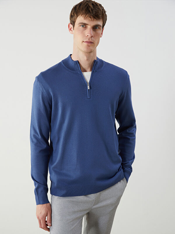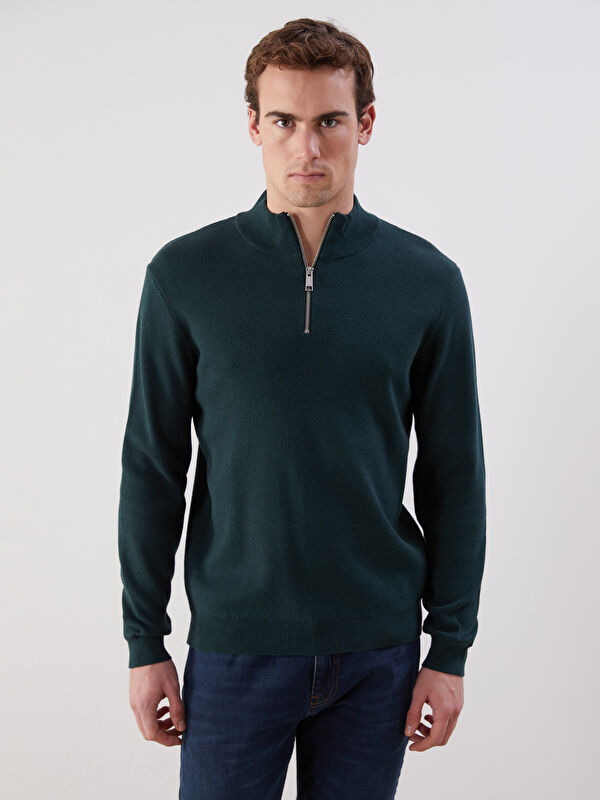 Свитер из трикотажа с длинным рукавом и воротником-трубой для мужчин