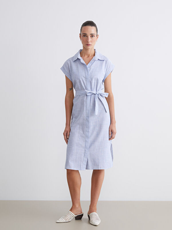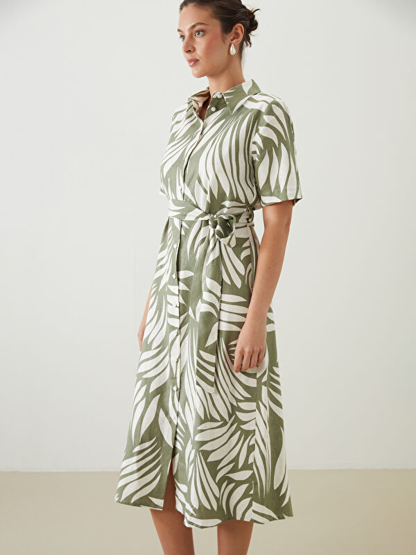 Узорчатое платье-рубашка из льняной смеси для женщин