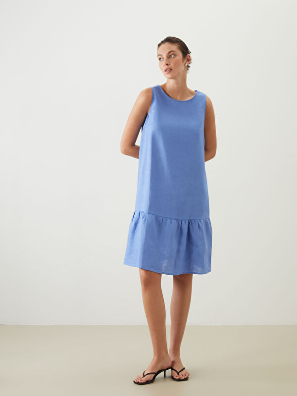 Платье с круглым вырезом и цветочным принтом из смеси льна
